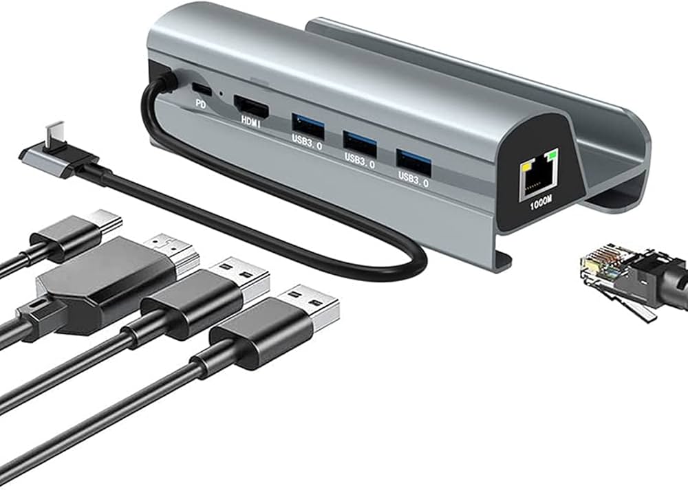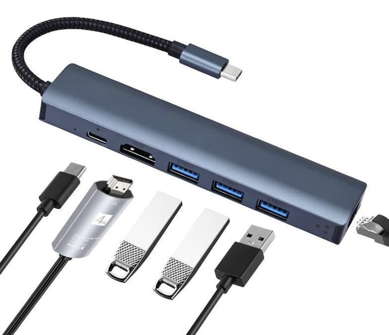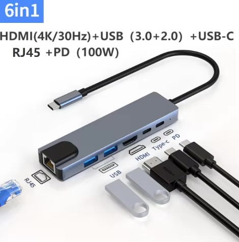 UM44. 6 in 1 USB C HDMI+RJ45(100Mbps)+USB3.0+USB2.0+USB C+PD
